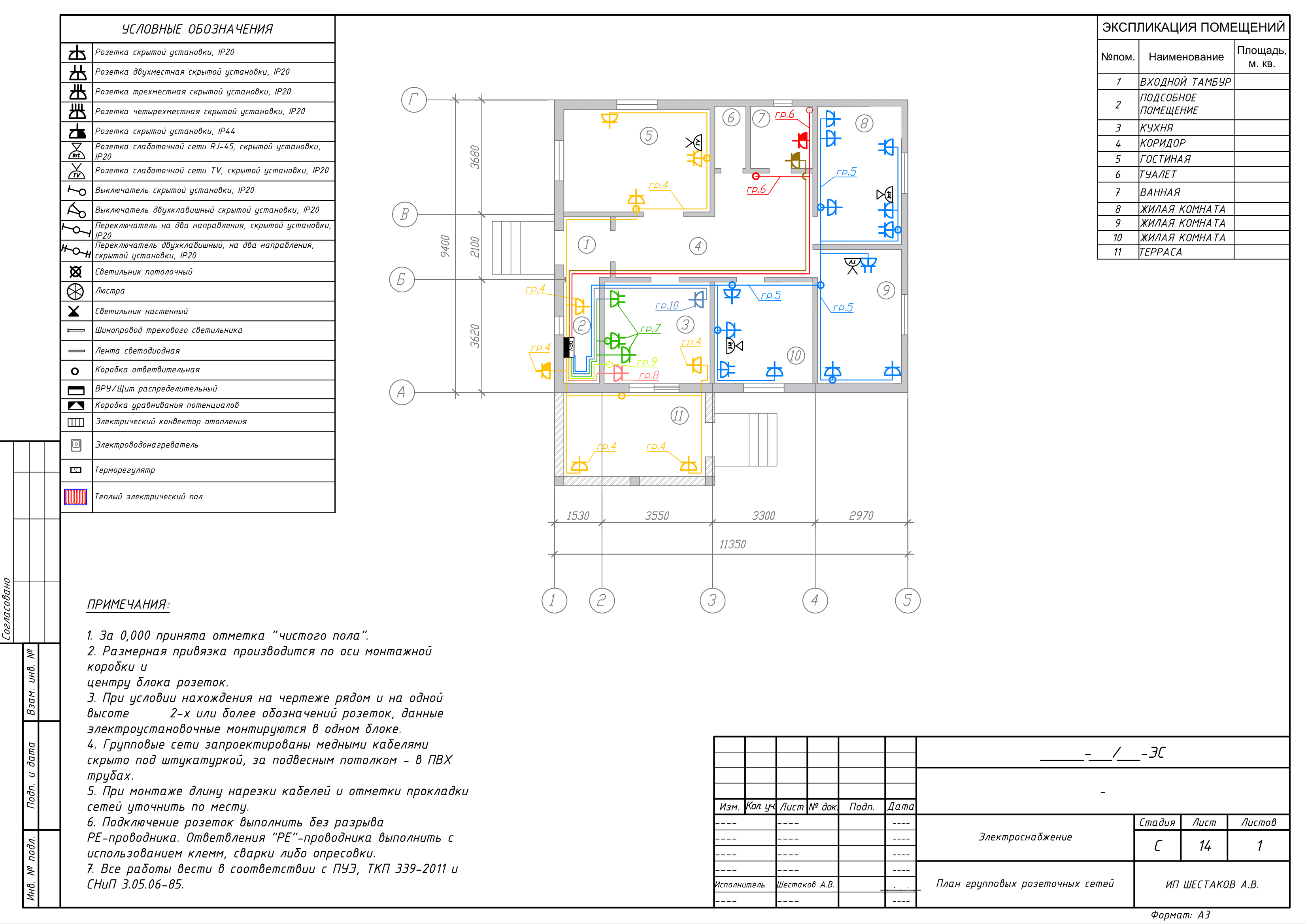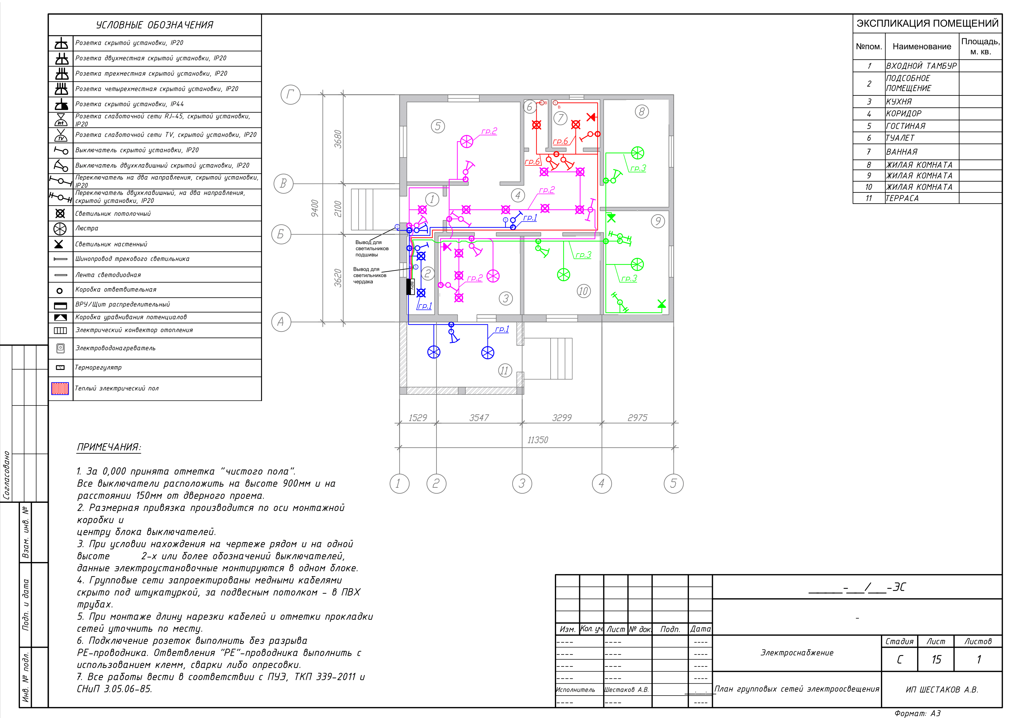 - Шаг 3 — Выезд на объект, анализ и сбор данных. Проговариваем схему электроснабжения — размещение розеток, освещения, оборудования и тп. с учетом Ваших пожеланий. Либо берем за основу раздел электрики дизайн-проекта. Заключаем Договор на проектные работы.