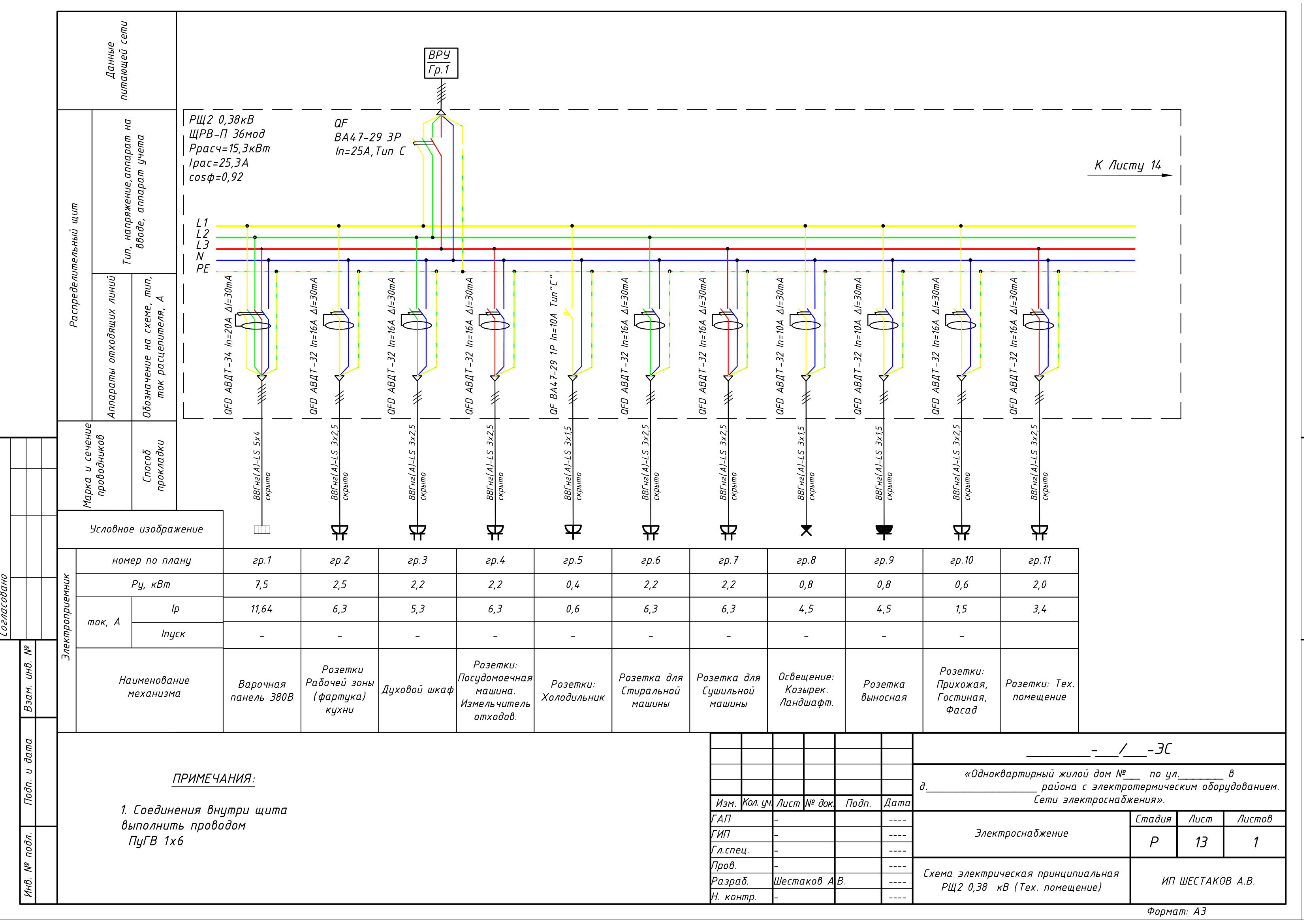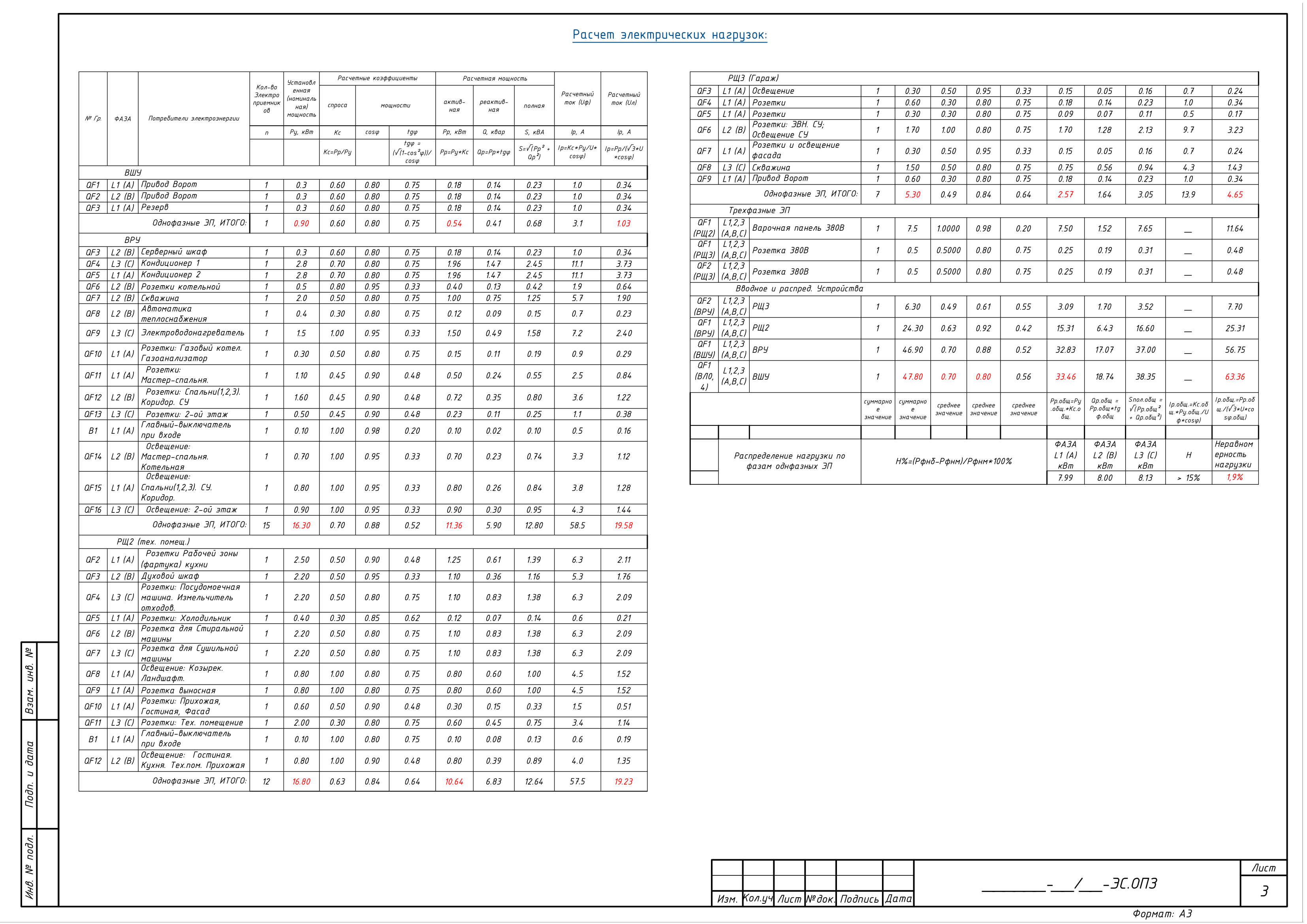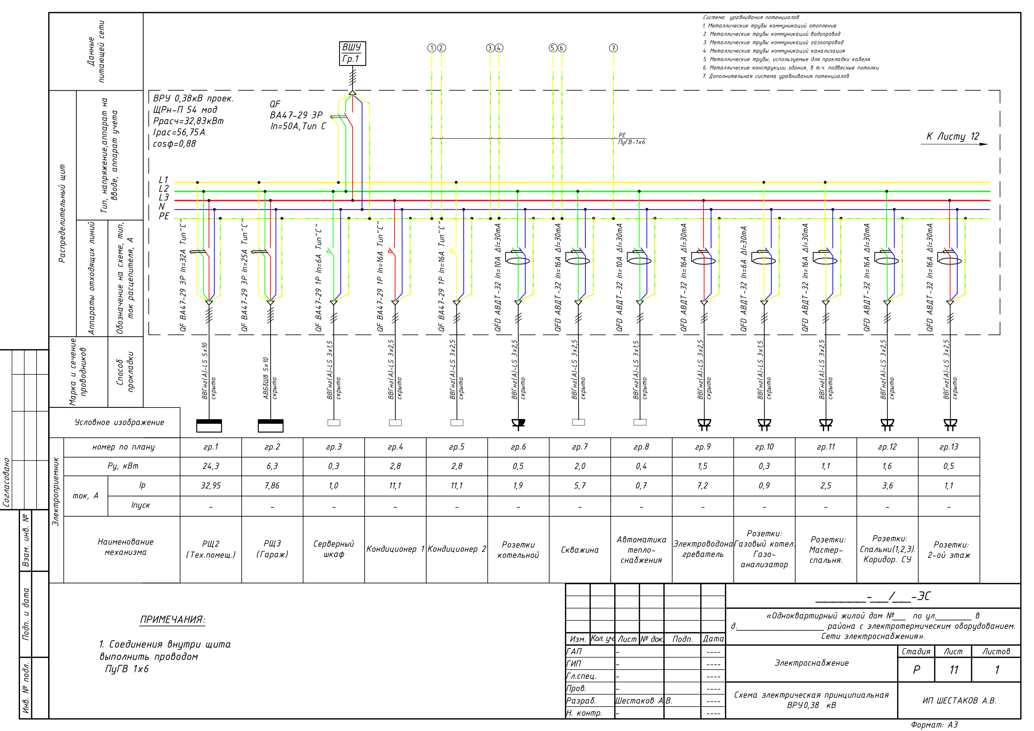 В процессе выполнения проектных работ выполняются расчеты нагрузок, определение параметров защитных отключающих устройств от перегрузок, правильный выбор сечения кабелей для домашней сети, защита проекта в в надзорных органах.