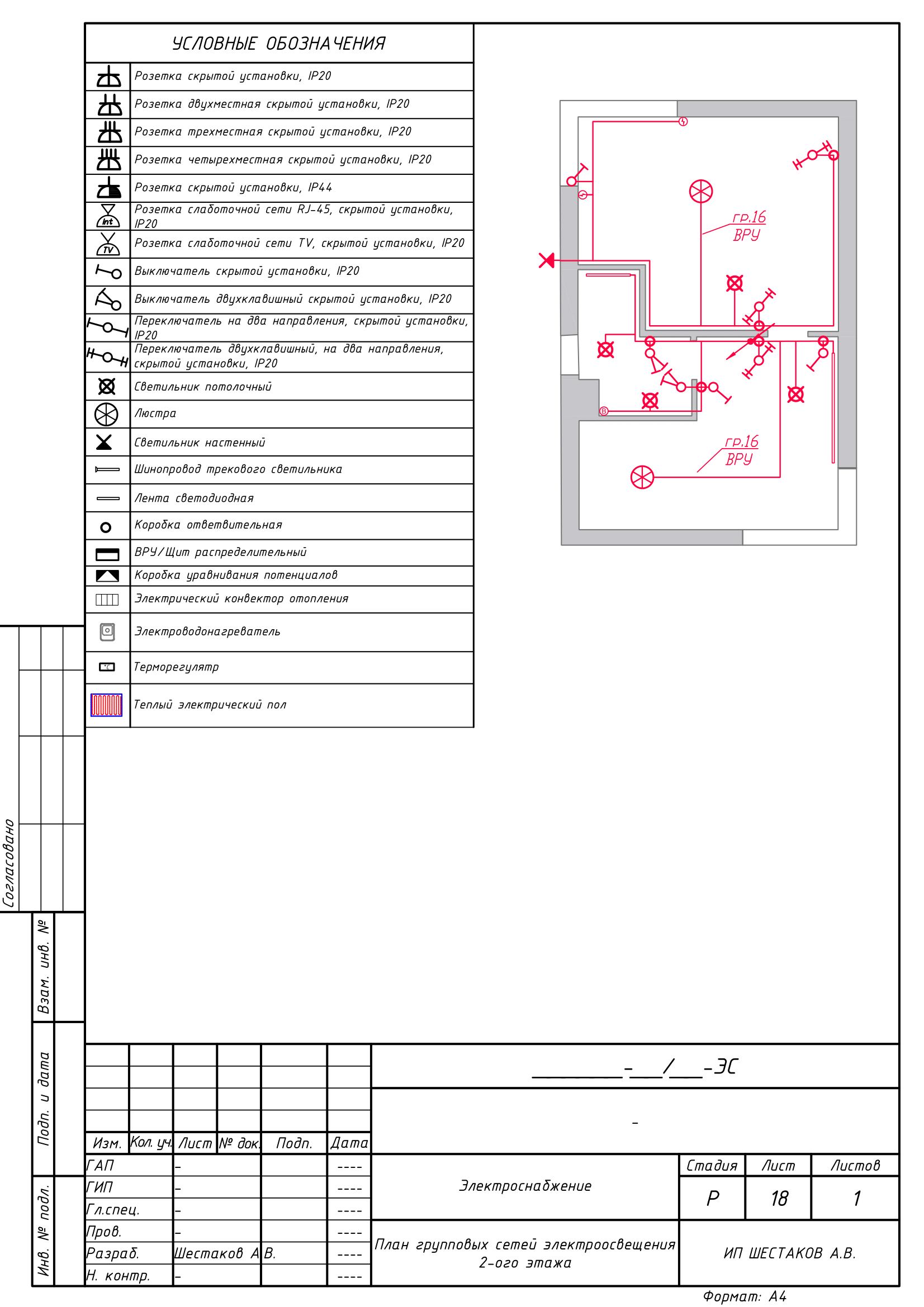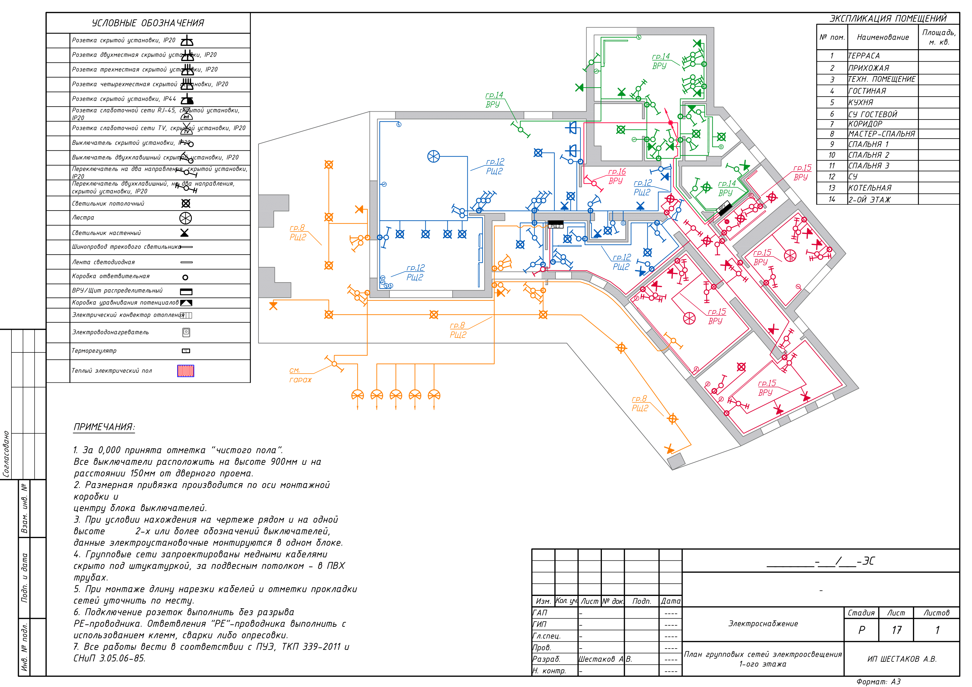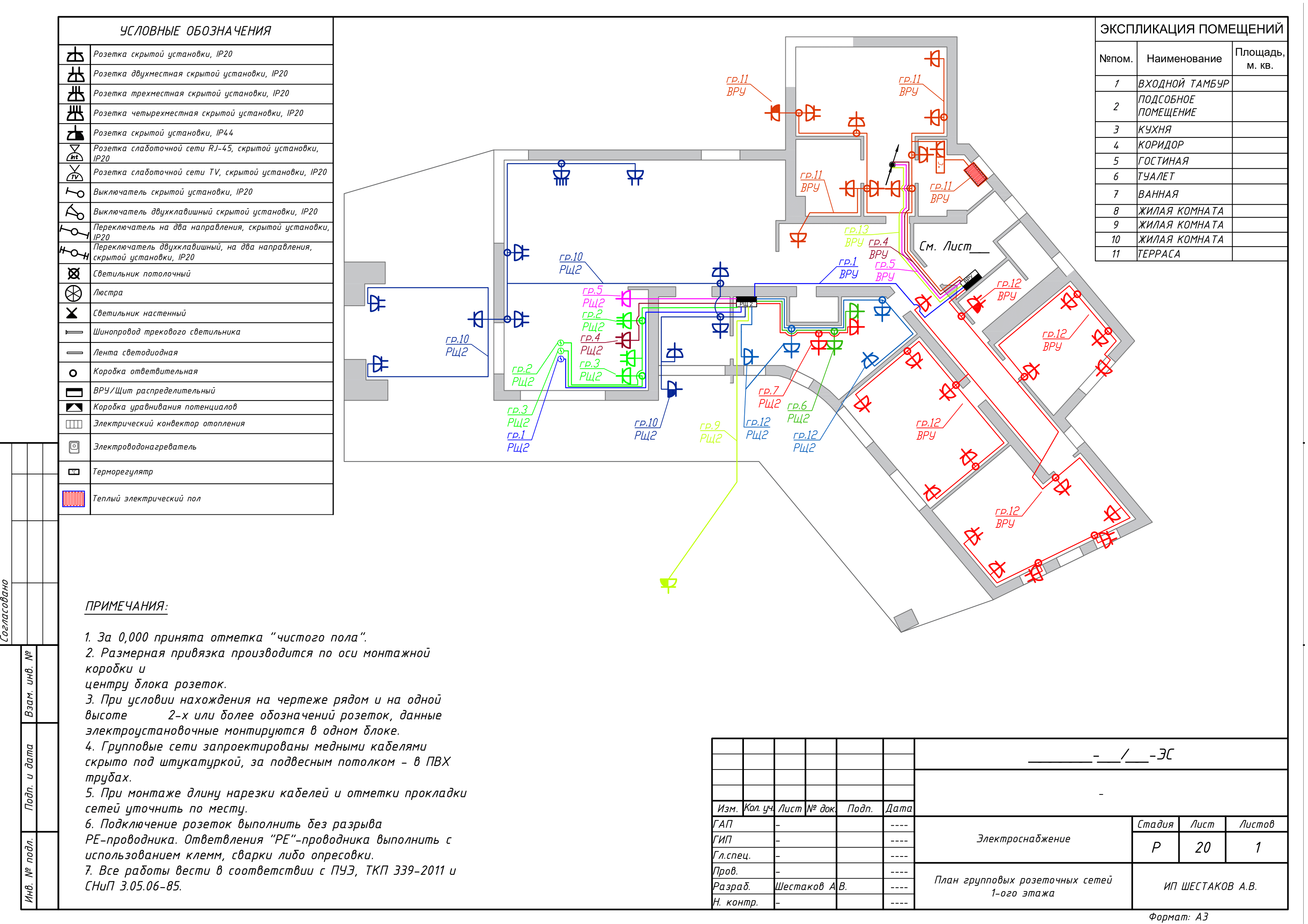 В процессе выполнения проектных работ выполняются расчеты нагрузок, определение параметров защитных отключающих устройств от перегрузок, правильный выбор сечения кабелей для домашней сети, защита проекта в в надзорных органах.