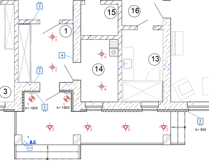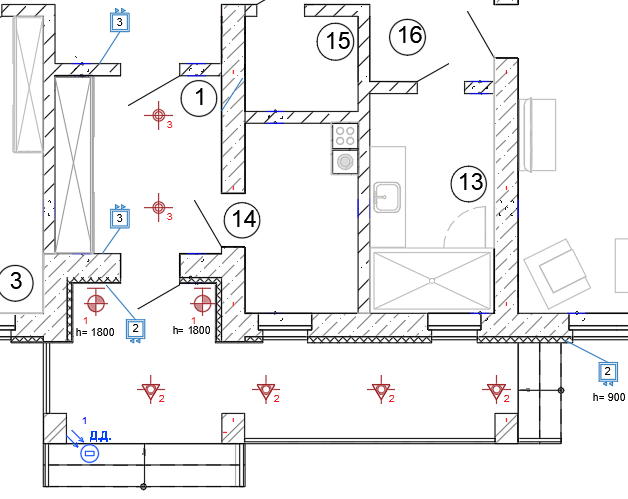 Все это нанесу на наши планы освещения и розеток: