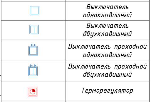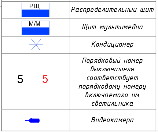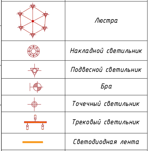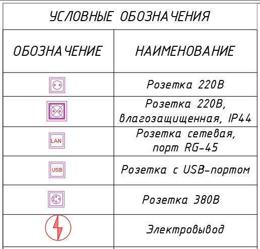 Электроточки на план будем наносить в виде условных обозначений, например: