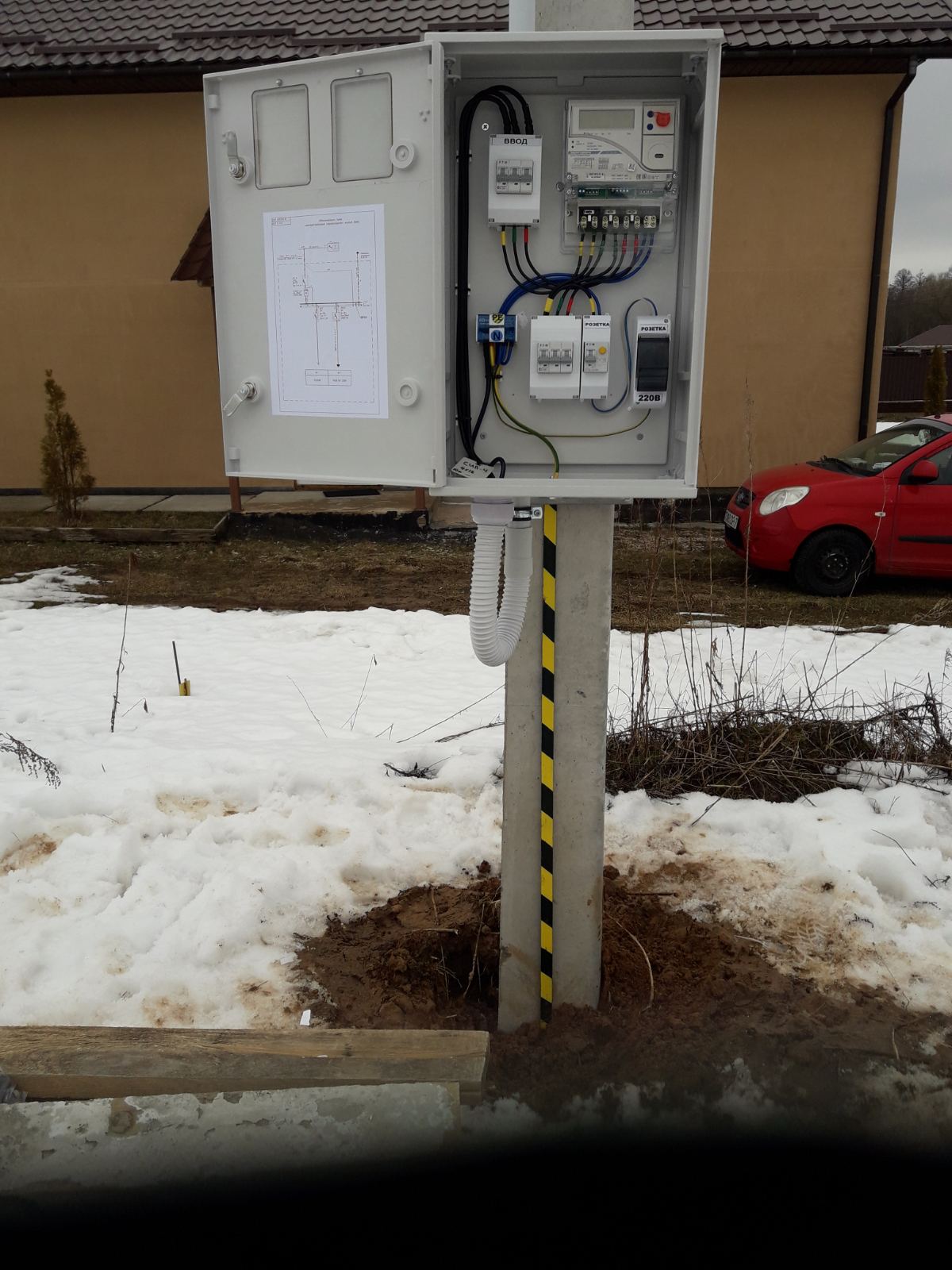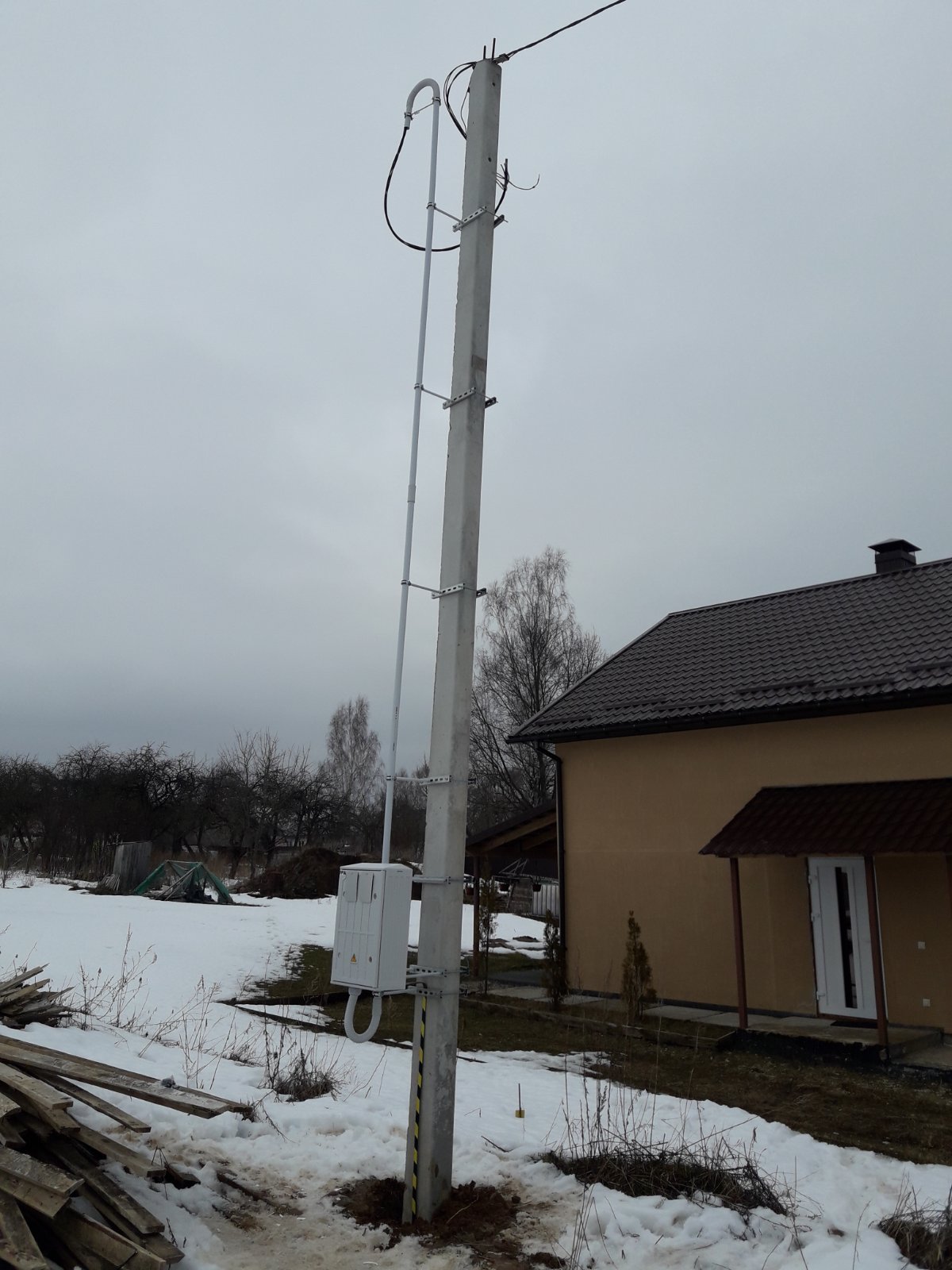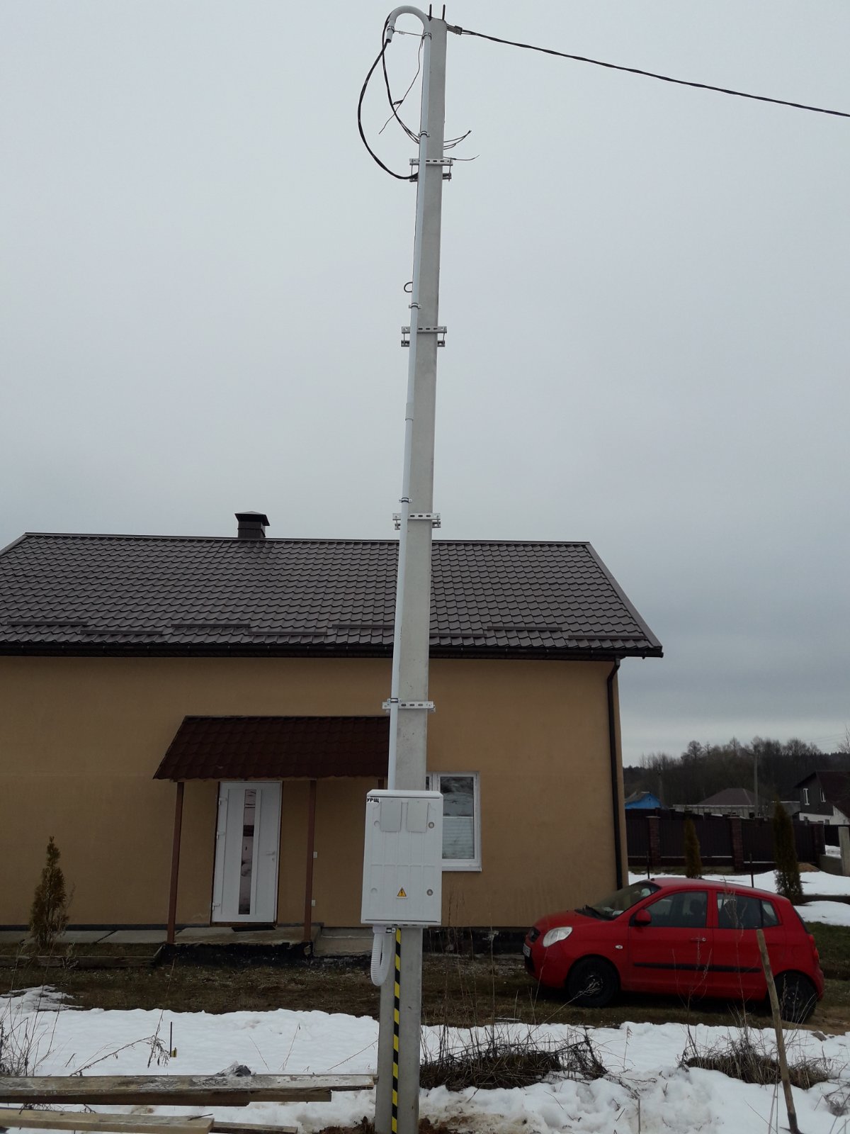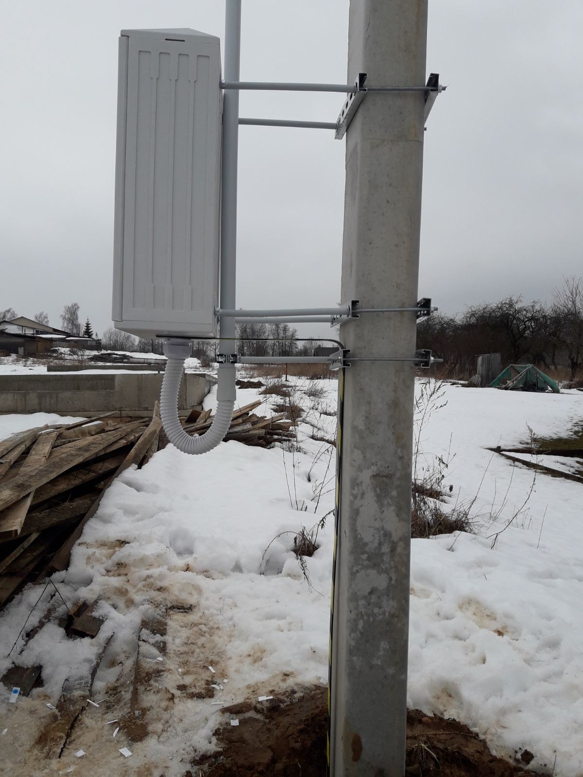 - Монтаж устройства ввода на опоре.